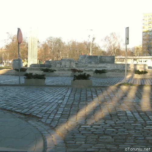 Fundament zdemontowanego i przeniesionego na nowe miejsce Pomnika Artylerii Polskiej na Placu Zwycięstwa. Pomnik obecnie znajduje się na Placu Towarzystwa Miłośników Torunia.