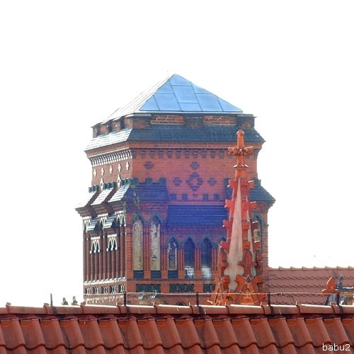 9. Ta duża to wieża Poczty Głównej, a ta mała przed nią – to wieżyczka zachodniego „balkonu” ratusza – widok jakby z wieży ratusza ale tak z połowy wysokości.