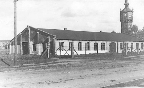 Wydaje mi się że jest to hala cementowni Reinharda Uebricka pod Dębową Górą. W tle wieża ciśnień należąca do stacji wodociągów na Mokrem postawiona na Dębowej Górze.