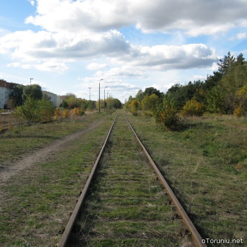 Tory te dochodziły do dworca Toruń-Północ. Widok od ulicy Legionów w stronę Szosy Chełmińskiej, po lewej stronie widoczne bloki przy ul. Mohna 71 i Bartkiewiczówny 94G. Tory jeszcze istnieją, dworzec już niestety nie.