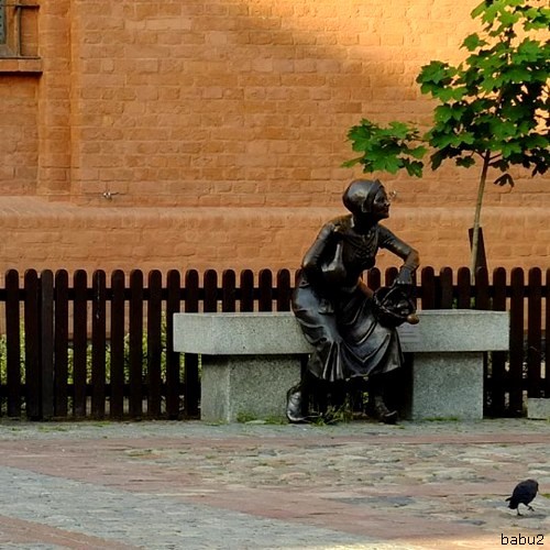 11. Na Rynku Nowego Miasta, przy zborze ewangelickim. Siedzi na niej toruńska przekupka.