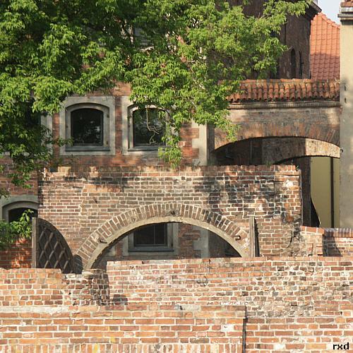 W okolicach skrzyżowania Podmurnej z Ciasną – te dwa łuki po prawej stronie są nad odcinkiem Ciasnej od Podmurnej do Mostowej.
