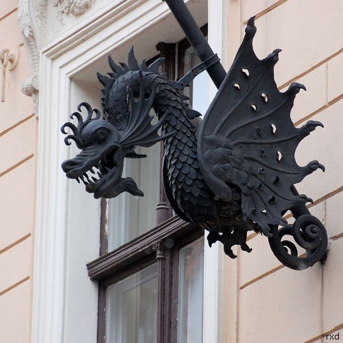 1. Między dwoma środkowymi oknami pierwszego piętra kamienicy Szeroka 18.