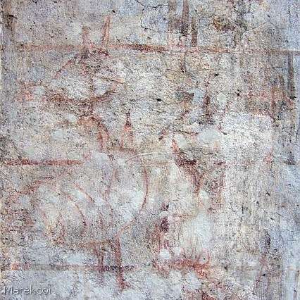1. Wejscie do kościoła Św. Jakuba (po lewej stronie). Fragment XIV w. dekoracji malarskiej kruchty(malowidło imituje ciosy kamienne).