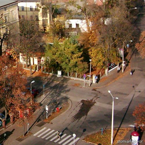 Zdjęcie przedstawia skrzyżowanie ulic Gregorkiewicza, Dąbrowskiego i Placu Świętej Katarzyny.