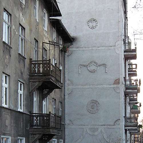 Detale te znajdują się na bocznej elewacji kamienicy przy ul. Słowackiego 61.