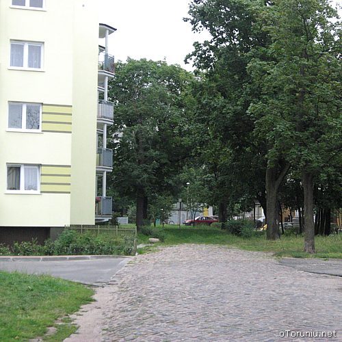 ul. Wybickiego, dawniej ulica biegła prosto pomiędzy drzewami aż do Grudziądzkiej