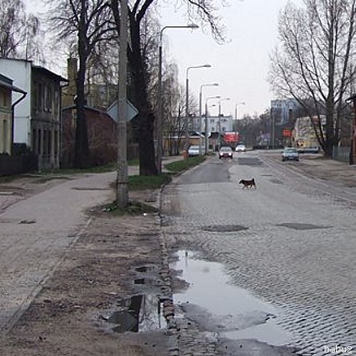 stary bruk przykryty plamami asfaltu i kawałki nieczynnego toru tramwajowego…. plany rozbudowy „od zawsze” … to jest jedna z głównych arterii miasta aspirującego do EUROPEJSKIEJ Stolicy Kultury… Szosa Chełmińska