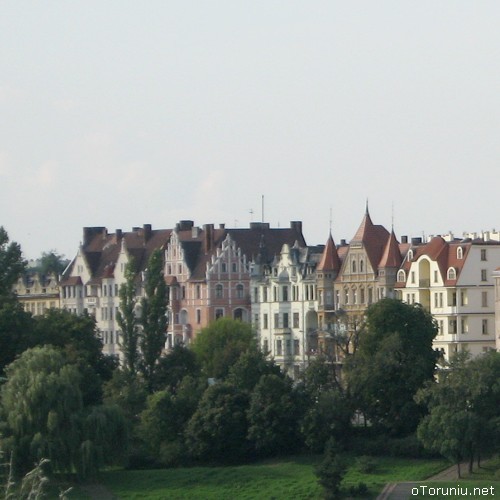 Kamienice przy ul. Warszawskiej, widziane z Kępy Bazarowej