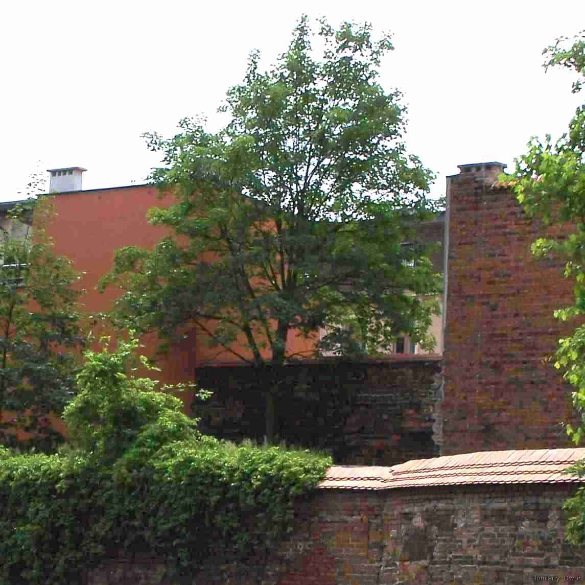 Mury przy baszcie Koci Łeb. Zdjęcie zrobione plus minus na parkingu na tyłach Urzędu Miasta Torunia