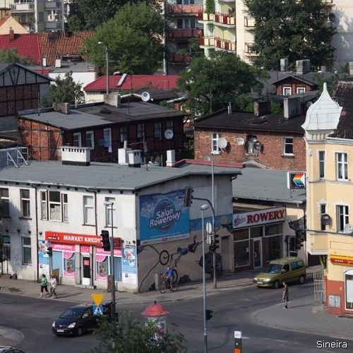 To jest skrzyzowanie ul. Bema i Szosy Chelminskiej a sklep rowerow znajduje sie na ul. Podgornej.