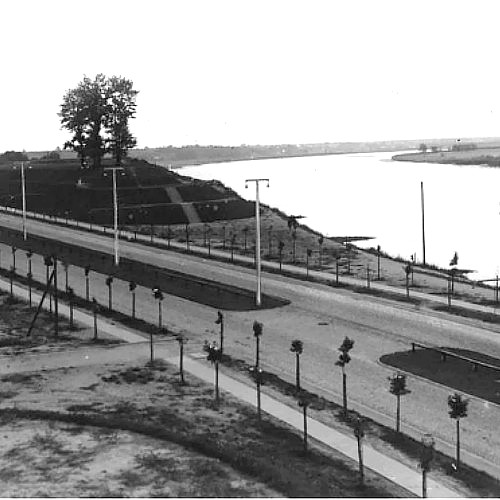aktualnie: ulica Romualda Traugutta, widok od strony mostu kolejowego i Dworca Miasto; w tle kopiec Gen. Hallera, z lewej strony wyjazd z ul. Gen. Sowińskiego
